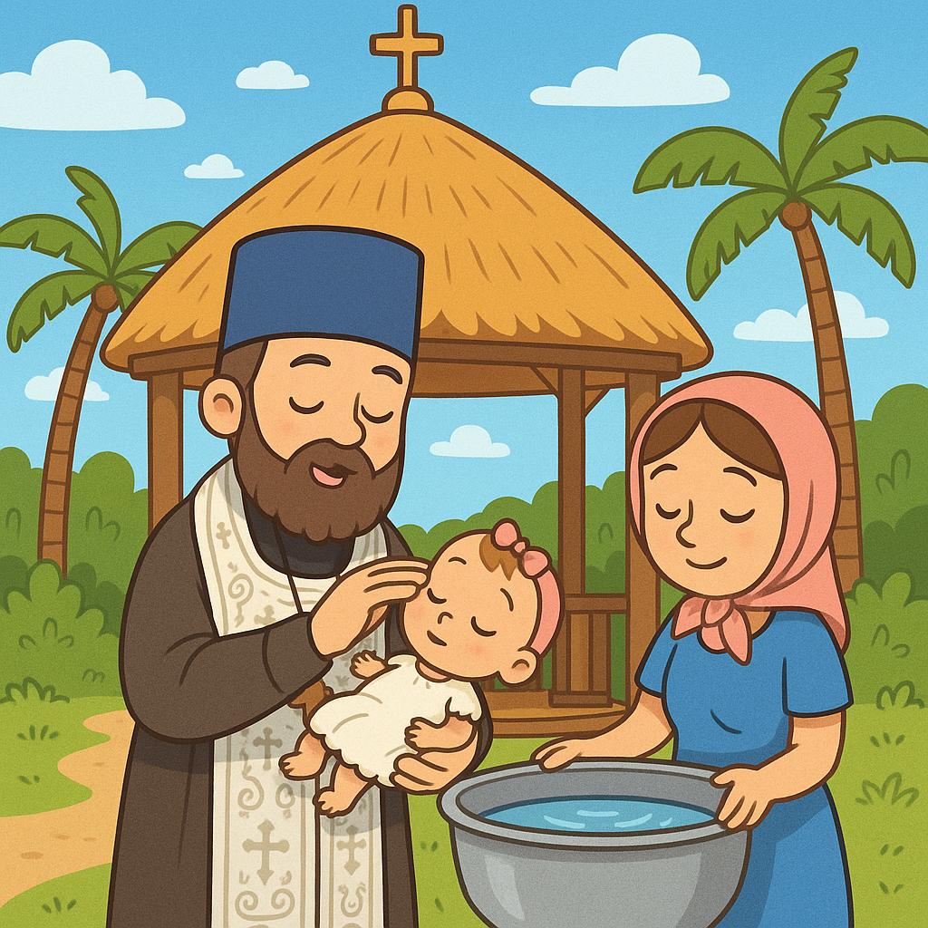 И вот настал тот день, которого мы ждали с трепетом – крещение нашей новорожденной доченьки. Это было поистине волшебное таинство! Отец иеромонах Антоний крестил нашу малютку не в стенах древнего храма, как часто это бывает на Родине, а в открытой беседке у нашего скромного, но теперь такого родного прихода. Воздух был наполнен пением тропических птиц, а под самой беседкой деловито сновали любопытные носухи, будто и они пришли разделить с нами эту великую радость! 🦝 Это было удивительное, пронзительное сочетание святости таинства и дикой, богоданной природы. Отец Антоний был полон такой благодати и любви, что все тревоги развеялись, как облачка в панамском небе.